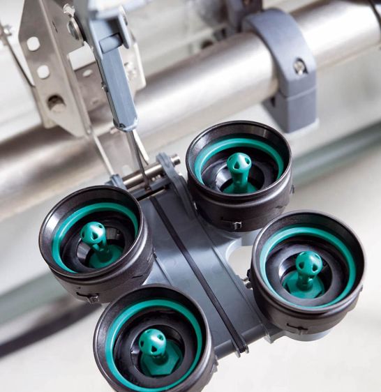 Le nouveau plateau de lavage s'adapte aussi bien au faisceau Classic 300 qu'au nouveau faisceau IQ (traite à quartiers séparés), avec des manchons en caoutchouc ou en silicone. Les formes de trayons peuvent évoluer dans le temps mais le plateau reste évolutif. Les manchettes ou coupelles se changent facilement en cas de modification de taille ou de type de manchons. L'objectif principal de cette nouvelle conception est d'obtenir un nettoyage optimal du faisceau trayeur. Le système breveté à double chambre guide le flux d'eau afin de nettoyer les quatre gobelets avec une pression élevée et constante. Le mécanisme de rabat a été optimisé pour une manipulation plus simple. Le réglage de la quantité d'eau est possible individuellement sur chaque plateau.