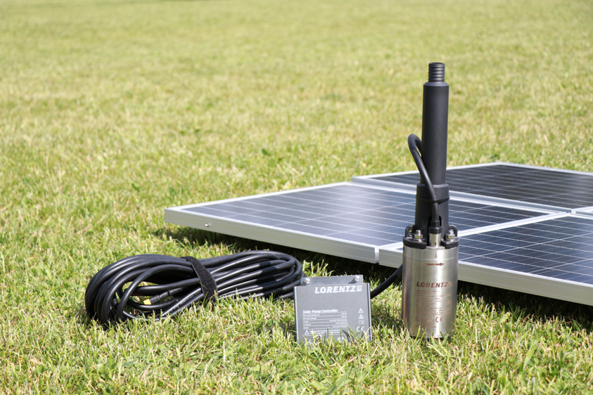 La pompe Lorentz, d’une puissance de 0,15 kW, peut être utilisée dans un forage, un puits, une citerne ou une étendue d’eau (rivière, étang…). Son débit est de 7 000 l/j jusqu’à 10 m de profondeur, 6 000 l à 25 m et 3 000 l à 40 m. D’un poids de 5,4 kg, elle est en acier inoxydable et son moteur DC sans balais ne nécessite pas d’entretien.
