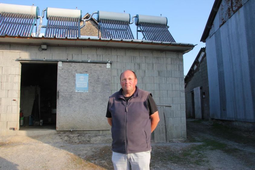 Patrice Abaffour est éleveur laitier en Mayenne. En 2012, lors d’une foire locale, il rencontre le fabricant de panneaux solaires thermiques FengTech. « L’idée d’utiliser l’énergie fournie gratuitement par le soleil pour chauffer l’eau m’a tout de suite plu, se souvient l’éleveur. J’en consomme beaucoup pour le lavage de la salle de traite et l’alimentation des veaux et je cherchais un moyen pour réduire ma facture d’électricité. » Ayant le projet d’agrandir sa laiterie, il construit un local dont le toit est orienté au sud, et dont la charpente renforcée peut supporter la tonne et demie de l’installation photovoltaïque. En effet, les panneaux sélectionnés ont la particularité d’intégrer une cuve isolée.