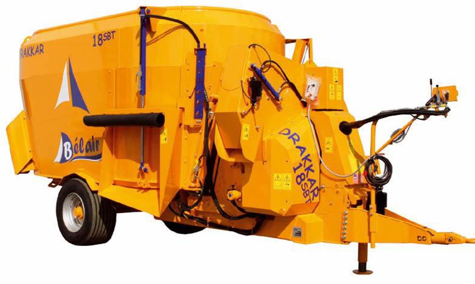 Le constructeur breton lance une nouvelle génération de mélangeuse à vis verticale : la Drakkar SBT. Il s'agit d'une machine avec turbine de paillage (1,60 m de diamètre) qui se décline en trois capacités : 16, 18 et 20 m3. Elle a l'avantage de présenter une faible hauteur pour s'adapter aux bâtiments bas. D'origine la distribution et le paillage s'effectuent par la turbine, soit par une goulotte standard ou une goulotte unique avec la rotation en option. Une trappe de distribution latérale est proposée en option. Un démêleur entraîné mécaniquement, disposé entre la cuve et la turbine, permet une distribution et un paillage réguliers.