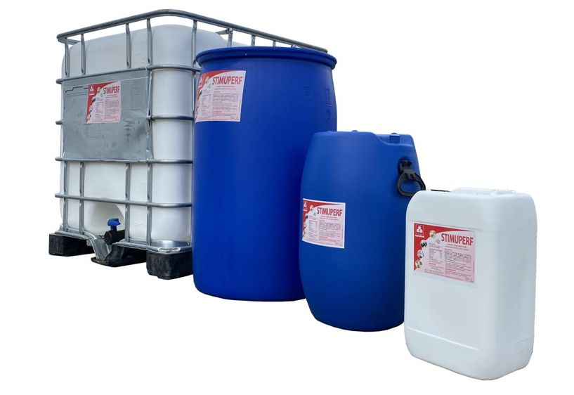 Stimuperf est une solution liquide à haute valeur énergétique destinée au péri-partum : à distribuer aux vaches à raison de 200 à 300 ml/jour deux semaines avant vêlage, jusqu’à trois semaines après, en prévention du déficit énergétique du début de lactation. Composé principalement d’extrait de malt, il constitue un apport de substances glucoformatrices à une période où les femelles ont une ingestion insuffisante. Stimuperf contient également du sirop de sucre by-pass, assimilé au niveau de l’intestin. La combinaison de ces différentes sources de sucres autorise ainsi une production d’acides gras volatils étalée dans le temps. Ce produit contient également du propionate de sodium, précurseur de la néoglucogénèse.