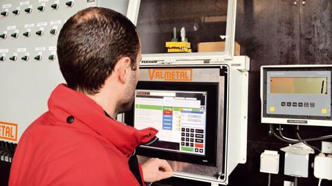 L'éleveur programme son robot sur un écran tactile. Le logiciel Autoration V+ assure la composition des différentes rations qui seront acheminées vers les auges par la même bande transporteuse.