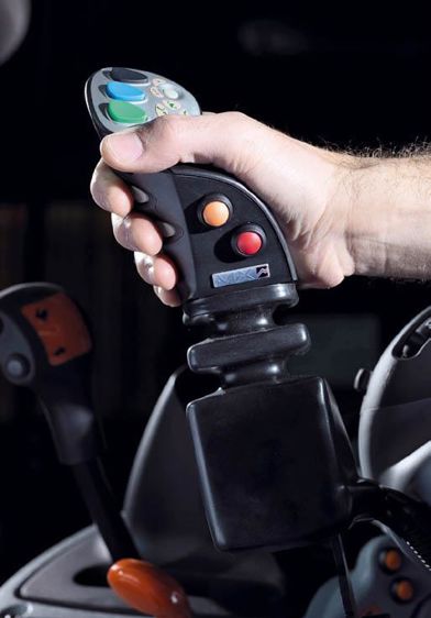 Exclusivité MX, le nouveau joystick ergonomique et multifonctions est proposé avec la gamme des T 400 Series. Il a été testé pour limiter au mieux la fatigue musculaire. Par ailleurs, les distributeurs hydrauliques sont systématiquement équipés d'une position flottante maintenue pour s'adapter à tous les types d'outils. Le duo poignée-distributeur permet une utilisation combinée des fonctions de levage et de bennage, indépendamment du type de pilotage, qu'il soit à câbles, basse pression ou électrohydraulique.