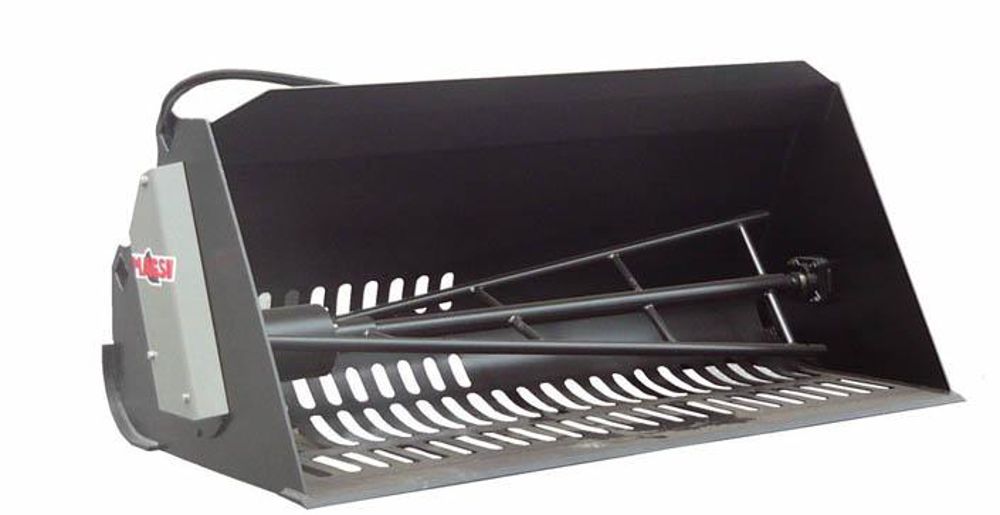 Ce godet qui lave et coupe les tubercules, permet d'abord la reprise au tas. Après avoir été cavée, la vis de brassage remonte les betteraves et les nettoie par frottement. La terre et les cailloux sont évacués par le fond ajouré. Ce brassage dure 1 à 2 min pendant le déplacement de l'engin. Si les betteraves sont particulièrement sales et humides, un second nettoyage plus poussé peut être réalisé par lavage dans le godet. Une cuve de rétention des effluents peut d'ailleurs être installée. Une fois les betteraves nettoyées, la trappe latérale est ouverte et les tubercules sont poussés vers une deuxième chambre, où une vis de tri commande les couteaux de coupe. Les deux vis sont commandées individuellement par des moteurs hydrauliques. Les capacités disponibles sont de 350, 700 et 1 000 kg.