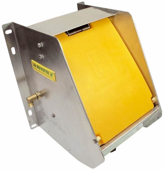 Les abreuvoirs Polystall de La Buvette ont été conçus pour être placés en sortie de salle de traite, moment privilégié pour l'abreuvement de la vache. Ils sont en Inox avec une porte en polyéthylène à double paroi qui évite l'entrée des souillures mais offre un accès facile à l'eau du fait de la souplesse du mécanisme. Le bac est équipé d'un rebord antigaspillage. Les abreuvoirs se fixent sur un mur ou sur des tubes. L'accès des animaux se fait soit de face soit de côté. Les abreuvoirs peuvent être raccordés à gauche ou à droite. La version double permet à deux animaux de boire simultanément. Équipés d'une vidange de gros diamètre, ils sont faciles à nettoyer. Ils peuvent être équipés de résistances de 50 W. Leur débit est de 36 l/min.
