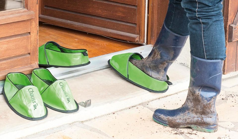 Chauss'in est une solution pratique pour rentrer quelques instants dans un milieu propre avec des bottes ou des chaussures boueuses sans avoir à les retirer ou, à l'inverse, sortir dans la cour ou le jardin avec des chaussures propres. En matière synthétique facile à laver, Chauss'in a été spécialement conçue pour introduire ses chaussures à l'intérieur sans les mains. Ce nouveau produit made in France se décline en 6 coloris et 5 tailles différentes au prix de 23 €. Commande en ligne sur www.chauss-in.com.
