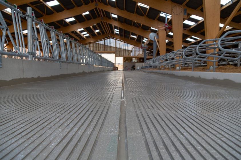 Contrairement aux rainures réalisées avec des molettes carbure, celles ainsi obtenues par sciage présentent des angles nets, parfaitement découpés, favorisant un meilleur appui des sabots au sol. Il n’y a pas de dégradation de la surface et cela quel que soit l’âge du béton. De 4 à 5 millimètres de profondeur, 12 millimètres de largeur et espacées de 27 millimètres, ces rainures rendent la surface antidérapante et apportent un confort de déplacement aux animaux.