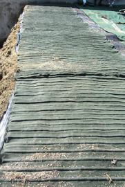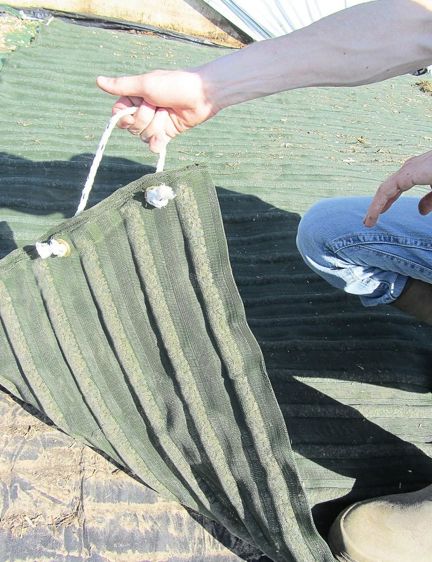 Pour gérer au quotidien le front du silo, une fois les filets de protection de la bâche et les silosacs retirés, Velitext-Agri propose une solution technique intéressante. Cela dans un objectif qui ne se limite pas au confort de travail. Grâce à ce produit nommé Silolest, il s'agit d'éviter les reprises en fermentation liées aux entrées d'air entre l'ensilage et la bâche, et que cette dernière ne flotte pas au vent. Cette société propose simplement de recouvrir la bâche avec des filets de protection déjà lestés. Ces filets de 3 m x 2,40 m, tissés en monofilament de polyéthylène haute densité (donné pour être résistant à l'abrasion) alternent des parties planes de 5 cm et des bandes cousues de 3 cm remplies de lest, du grès concassé, roulé et lavé. De quoi exercer une pression de 7 kg/m2. Pour les déplacer, il suffit de les tirer à l'aide des poignées en corde (quatre par filet) prévues à cet effet. Prix de ce filet garanti sept à dix ans par Velitext : 160 € pièce.