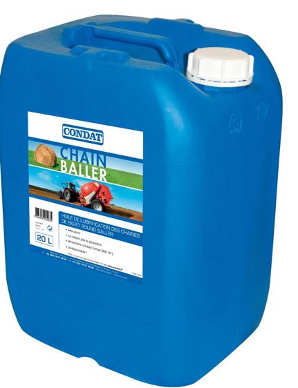Les round-baller et big-baller sont composés de nombreuses chaînes de transmission qui doivent être lubrifiées régulièrement. Bien souvent, les agriculteurs ne savent pas comment procéder et remplissent le réservoir avec ce qu'ils ont sous la main : une huile moteur, une huile hydraulique, une huile de chaîne de tronçonneuse, voire un mélange d'huile et de fuel. Pourtant, l'utilisation d'un lubrifiant inadapté peut entraîner une usure plus rapide, un grippage du système de lubrification, des chaînes trop grasses qui s'encrassent avec la poussière, mais aussi la détérioration des plastiques d'enrubannage si le produit est agressif. Partant de ce constat, Condat lance une huile spécialement développée pour les chaînes de transmission de ces machines agricoles, la Condat Chain Baller. Contrairement à la grande majorité des huiles minérales, la Condat Chain Baller n'attire pas la poussière et sa fluidité a été étudiée pour répondre aux spécifications de la majorité des fabricants de round-ballers et big-ballers. Elle est biodégradable, alimentaire (H1) et sa viscosité varie peu avec la température, respectant le réglage du système centralisé. En outre, elle ne coûte pas plus cher qu'une huile hydraulique ou une huile moteur classique.