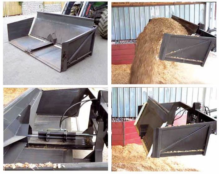 Présenté à l'Agritechnika 2011 et récemment commercialisé dans l'Hexagone, le constructeur allemand Fliegl présente un godet à fond poussant. Une conception issue des remorques à fond poussant de la marque. Alternative au godet à déversement en pointe, ce matériel plus léger permet une vidange complète du produit et s'adapte sur tous les chargeurs frontaux ou télescopiques. Il est particulièrement intéressant pour la manutention de produits volumineux. Son fonctionnement ne nécessite qu'un distributeur à double effet. Complètement étanche grâce au joint en polyuréthane qui constitue le pourtour du godet, la gamme se décline en trois modèles de 2,3 à 3,3 m3.
