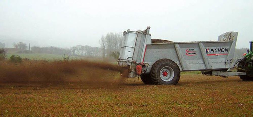Les huit épandeurs Pichon, de 12 à 24 m3, pourront désormais être équipés d'une hotte d'épandage. Ce système, dérivé des volets bords de champs, s'adapte sur le cadre arrière. Selon le constructeur, il permet de « réaliser un épandage régulier en garantissant une largeur importante ». Cette hotte est bien adaptée aux produits de faible densité nécessitant d'ordinaire une table d'épandage (fientes sèches, cendres, compost…). Réalisée en deux parties et commandée hydrauliquement, elle offre les fonctions « volets bords de champs » en épandage traditionnel et protection totale du cadre hérisson en transport sur la route. Elle est constituée par deux grands carters et deux petits déflecteurs en partie basse. Le produit est émietté et démêlé par les hérissons de gros diamètre (Ø 1 035), avant de retomber sur la base des disques équipés de pales spécifiques (Ø 1 077).