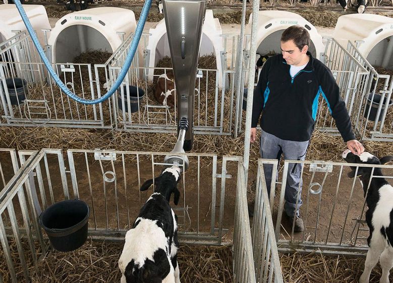 CalfRail est un nourrisseur automatique pour des veaux en cage individuelle. Il est composé d'une unité d'allaitement mobile posée sur rail. Un distributeur automatique sert d'unité de mélange. Une pompe péristaltique (ou pompe à galet) envoie la buvée jusqu'à la tétine, fixée sur un bras pivotant, par l'intermédiaire d'un tuyau d'alimentation isolé. Une unité de CalfRail peut nourrir jusqu'à 32 veaux huit fois par jour selon le plan d'allaitement programmé. Le bras mobile pouvant pivoter à 180°, il est possible de distribuer des deux côtés d'une même allée. Un nettoyage automatique du système s'opère après chaque cycle de buvées.