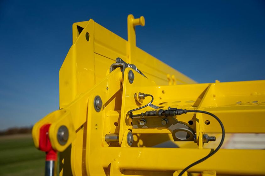 Adapter le réglage du volet de compression au type de fourrage : c’est l’objectif affiché par Pöttinger en équipant les remorques autochargeuses Europrofi Combiline d’une nouvelle paroi frontale, dont la géométrie a été revue. Le volet est précontraint par des ressorts, et il dispose d’un capteur qui assure la commande des automatismes de chargement. Il mesure 2 m de largeur et permet un remplissage homogène de la caisse, y compris sur les côtés. En version de série, le volet est équipé de deux positions réglables manuellement, et il existe une option où un vérin hydraulique ajuste l’inclinaison en continu. Il est ainsi possible de faire pivoter complètement le volet le long de la paroi frontale, afin d’optimiser l’utilisation du volume disponible pour le transport d’ensilage. Au besoin, les cordages optionnels peuvent être retirés. Pour la récolte de fourrages lourds et humides, le constructeur propose en option un autre capteur, qui enregistre le couple de chargement au rotor. Si le fourrage n’atteint pas le volet de compression, c’est ce capteur supplémentaire qui pilote alors le remplissage automatique et le fond mouvant afin d’optimiser le volume dans la caisse.