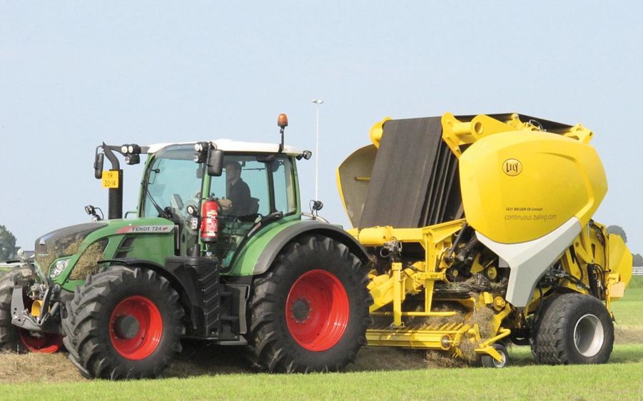 La première balle commence à se former comme dans une chambre variable classique. Quand elle atteint sa taille définitive, elle est transférée vers l'arrière par une rotation des rouleaux de façon à laisser de la place au démarrage de la seconde balle. Toujours accompagnée par la courroie, elle reste en tension. Lorsque le liage de la première balle est terminé, la porte s'ouvre et la dépose. La courroie est alors réorientée vers l'avant pour poursuivre le pressage de la balle suivante. Il s'agit bien d'une presse à chambre variable capable de produire des balles d'un diamètre de 1,80 m. L'unité d'alimentation de la CB Concept reprend les éléments de la gamme Lely Welger avec un pick-up sans chemin de came de 2,25 m et un ameneur rotatif qui compte dix-sept couteaux. Elle possède également la trappe antibourrage HydroFlexControl. Cette machine reste relativement compacte, mais son poids et l'entraînement de la monocourroie requièrent une puissance de tracteur de 170 ch au minimum (200 ch si le relief est plus marqué).
