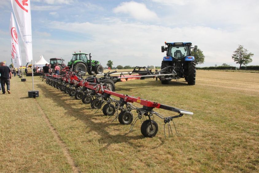 Quatorze toupies pour une largeur de travail de 15,60 m. Telles sont les caractéristiques de la nouvelle faneuse Vicon Fanex 1564 C. Ce modèle semi-porté dispose d’un chariot sur lequel se replient les éléments pour le transport sur route. La largeur de l’ensemble est inférieure à 3 m. Les rotors de petit diamètre supportent six bras chacun. Le châssis dispose d’une grande souplesse et s’adapte à tous les terrains, indépendamment de l’essieu principal, un atout pour éviter de gratter le sol et de soulever la terre. Cette faneuse est équipée de pneumatiques 380/55-17 remplaçables, en option, par des 500/50-17. Le constructeur insiste sur le faible nombre de graisseurs et sur les longs intervalles entre les entretiens.
