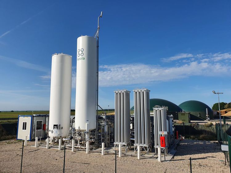 Sur les installations de méthanisation en injection, le besoin en gaz peut fortement varier sur les réseaux de distribution les week-ends et selon les saisons. Il est fréquent que la consommation soit inférieure à la production des méthaniseurs raccordés au réseau, les contraignant à limiter leur injection, voire à en torcher une partie. Azola a développé une solution de liquéfaction pour le stockage tampon du biométhane, à partir d’innovations brevetées. Lorsque la consommation est insuffisante, le biométhane est liquéfié et stocké en citernes avec une réduction de 600 fois son volume. Dès que la capacité du réseau le permet, le biométhane est de nouveau vaporisé et injecté automatiquement. Il peut aussi être facilement transporté vers d’autres points d’injection, de stockage ou d’utilisation… La solution AzolaBIO est innovante car elle n’utilise pas de compresseurs gourmands en électricité, mais de l’azote liquide qui refroidit le biométhane par un flux inversé jusqu’au point de le rendre liquide, pour le stocker autour de 160 C°. Les flux sont créés par des différences de températures, créant des deltas de pressions et dirigés via des vannes pneumatiques, un autre avantage car celles à commandes électriques spécifiques coûteraient très cher.