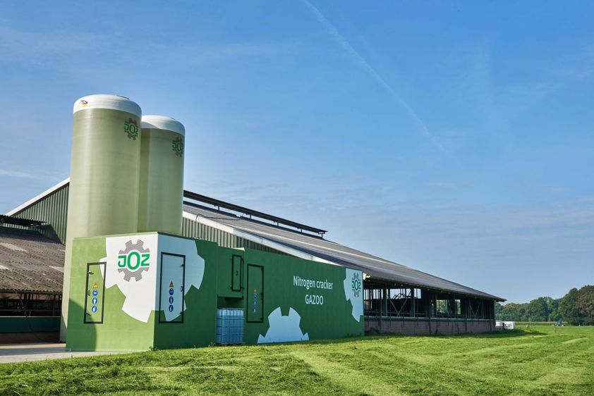 Après une séparation de phase du lisier, la partie liquide est traitée dans un craqueur d’azote conçu par Joz : le Gazoo.
