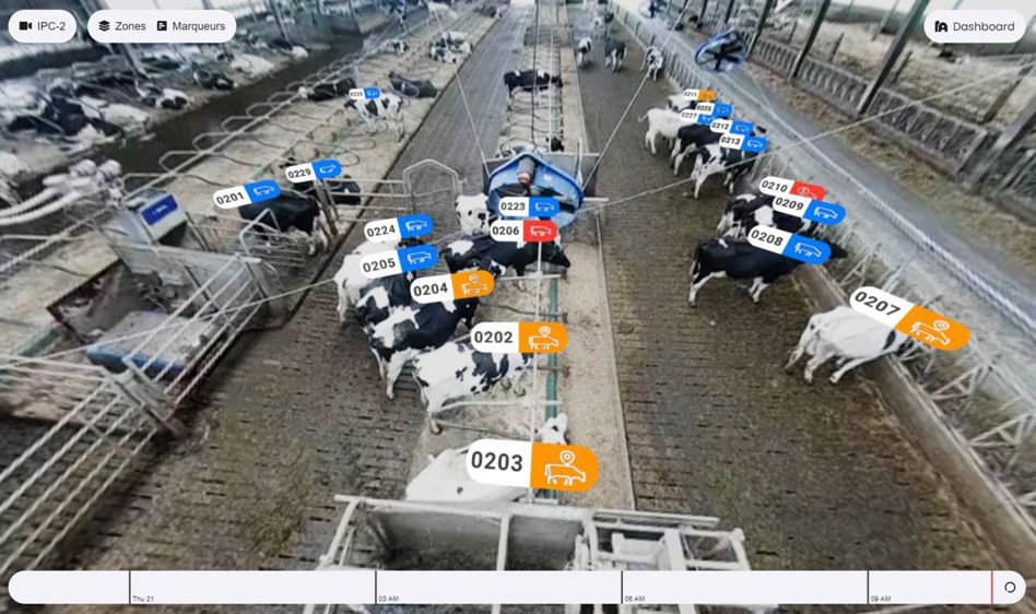 AiHerd est la solution de monitoring de troupeau de nouvelle génération. Finis les capteurs posés sur les animaux. En combinant vision assistée par ordinateur et intelligence artificielle, AiHerd surveille le troupeau et donne les alertes en cas d’événement d’intérêt (éléments zootechniques et/ou pathologies). La technologie identifie l’animal via une reconnaissance faciale. Les caméras installées au plafond de la stabulation permettent de repérer et de suivre 24h/24 les animaux et l’intelligence artificielle analyse toutes les informations en temps réel : identité, posture, comportement, interactions, lieux fréquentés… Les événements majeurs sont repérés et l’éleveur est alerté en cas d’éléments impactant la santé ou la production : détection des chaleurs, des boiteries, suivi des vêlages, des mammites, confort des animaux… Ces informations sont restituées dans une interface web qui laisse une large place aux images et est personnalisable par l’éleveur. L’utilisation de la vidéo assistée par ordinateur couvre un spectre de fonctionnalités plus large que les autres systèmes de monitoring. AiHerd est évolutif et développera de nouvelles possibilités au fur et à mesure de son apprentissage pour permettre des détections plus fines et plus précoces.
