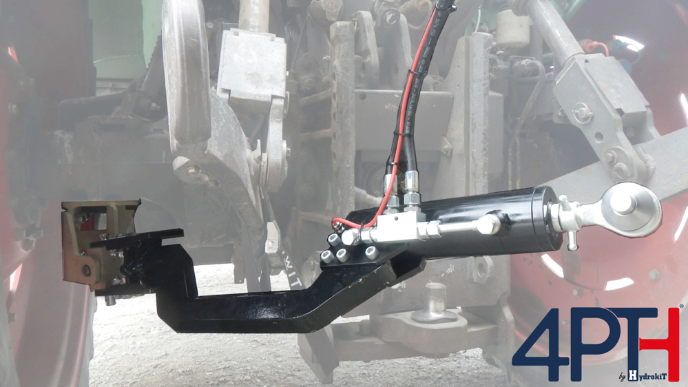 Le quatrième point hydraulique d’Hydrokit permet de réaligner l’outil attelé dans le bon axe, lors de travail en dévers par exemple, via un déport pilotable depuis la cabine par un distributeur double effet.