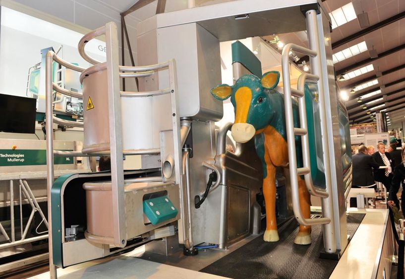 GEA A PRÉSENTÉ POUR LA PREMIÈRE FOIS AU SPACE son nouveau robot de traite Monobox, destiné exclusivement aux troupeaux de moins de 70 vaches. Il complète ainsi le robot évolutif Multibox MIone disponible, lui, d'une à cinq stalles. Ce tout nouveau Monobox intègre le module de traite DairyProQ qui équipe le roto de traite robotisé de GEA. Cela autorise un branchement très rapide et une maintenance facilitée. Le faisceau trayeur assure toutes les phases de la traite : lavage, stimulation, premiers jets, traite, post-trempage. L'éleveur peut intervenir facilement sur la mamelle par l'arrière du robot. D'ailleurs, une lumière Led est prévue pour éclairer la mamelle. La vache entre dans la stalle par le côté gauche et sort par le devant ou sur le côté grâce à un portillon. L'auge ronde intégrée dans la porte est protégée par un carter au moment de l'ouverture. Ce robot compact au design aéré sera disponible en France à la fin de l'année 2015.