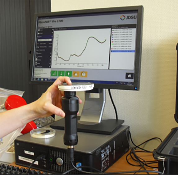 Scanea est un outil portable d’analyse infrarouge (NIR) conçu pour évaluer précisément et instantanément la digestibilité de l’amidon. L’opération se réalise directement en ferme, à partir d’un prélèvement de bouse de vache. De la taille d’une lampe de poche, cet équipement est aussi fiable qu’une analyse chimique selon Provimi. Les résultats sont obtenus en cinq minutes seulement et transmis sur la tablette. Concrètement, il suffit de collecter une bouse dans la boîte de Petri, de la scanner par-dessous avec le lecteur NIR et de se connecter en Bluetooth au logiciel pour lancer l’analyse et générer un rapport renseignant la quantité d’amidon contenue dans les bouses et sa digestibilité totale.