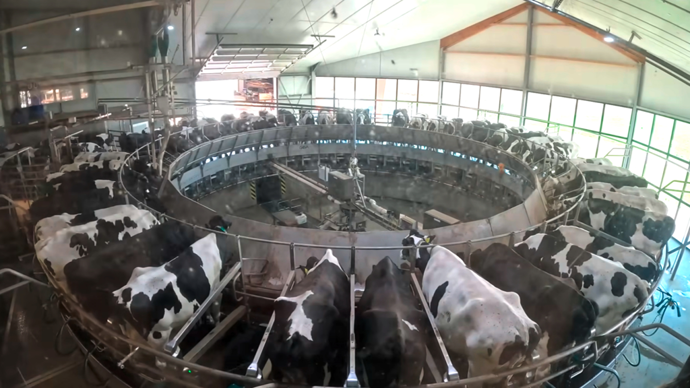 Direction la Hollande pour visiter une ferme laitière équipée du nouveau roto T8600 de chez GEA. Les 350 vaches y passent 3 fois pour un total de 6 h de traite par jour et une production moyenne de 35 kg/vache.