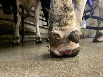 L’étude clinique a été conduite pendant six mois, dans cinq élevages du Grand Ouest, soit sur 640 vaches au total, chacune étant son propre témoin : un pied traité par pulvérisation en salle de traite et un pied non traité, afin de limiter l’influence des facteurs de risque (identiques pour les deux pieds). La pulvérisation a été réalisée sur les pieds des postérieurs gauches une fois par semaine, sans nettoyage des pieds.