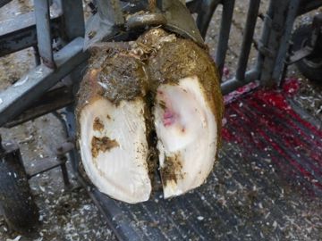 « Les boiteries dans cet élevage étaient majoritairement dues à un problème de sol et, de façon secondaire, à la gestion de la transition alimentaire autour du vêlage. Les vaches ayant passé l’hiver précédent sur des tapis et au pâturage, la pousse de la corne n’était pas adaptée à l’abrasivité de ce sol. Cela explique que la corne s’est d’abord usée plus vite qu’elle n’a poussé, puis que l’on ait retrouvé du comblement de la sole. L’incidence des boiteries devrait d’autant plus diminuer que la pousse de la corne va s’adapter à ces nouvelles conditions. »