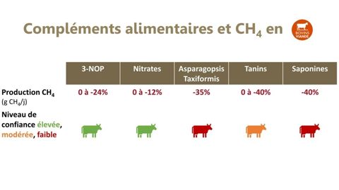 Le 3-NOP et les nitrates proposent respectivement un niveau de réduction des émissions entre 0 et 24 %, et 0 et 12 %, mais avec un niveau de confiance assez élevé.