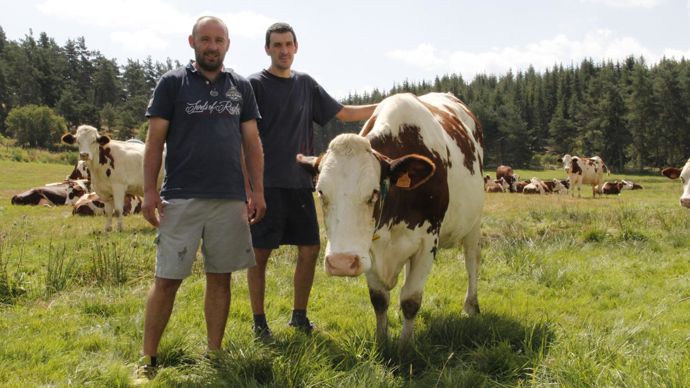 Installé sur l’exploitation familiale en 2008 avec 80 000 litres de lait et un troupeau abondance à 3 500 litres, Christian a d’abord cherché à développer la production laitière par la voie fourragère et la génétique en intégrant une part croissante de montbéliardes dans le troupeau. En 2009, il est rejoint par son frère, Daniel, puis par sa compagne, Sonia, en 2010. À partir d’une alimentation de base 100 % herbe (foin + enrubannage) et avec seulement un mois de plein pâturage au printemps, la production par vache va progressivement dépasser les 7 000 litres de lait tout en maintenant un coût alimentaire proche de 100 €/1 000 l. Dans ce système, les éleveurs n’utilisent aucun produit phytosanitaire et mettent en œuvre une stratégie de traitements antiparasitaires et de tarissement des animaux raisonnée au cas par cas. Dommage de ne pas valoriser ces pratiques ! Mais la conversion bio est jugée inadaptée au contexte pédoclimatique local difficile. En effet, la fertilisation des prairies en sortie d’hiver est stratégique pour la constitution de stocks de qualité, avant le coup de sec de l’été. En revanche, avec moins de 1800 kg de concentré/VL, le pas vers le cahier des charges de l’AOP était facile à franchir. « Lorsque je me suis installé avec ma mère, l’exploitation comptait un petit troupeau caprin, avec une part de vente directe à la ferme et sur les marchés. Au-delà de la valorisation, le choix de la transformation, c’est aussi un retour aux sources et la fierté de proposer un produit fini. »