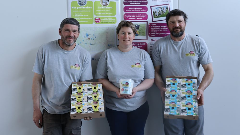 Depuis fin 2020, une troisième associée, Delphine Chaux, a rejoint le Gaec. La transformation fromagère avait été arrêtée un an plus tôt. Delphine se consacre à un atelier de transformation en yaourts et crèmes dessert, qui emploie deux salariés. Dans le même temps, la production laitière a été portée à 500 000 l et des jersiaises ont intégré le troupeau pour ramener un peu de taux. Les éleveurs ont pu louer 30 ha supplémentaires : cela leur a laissé assez de latitude pour refaire du maïs ensilage sur 7 ha, dont 3 irrigués, afin d’arrêter d’en acheter (ils en distribuent 3 kg de MS pendant neuf mois). Ils sont désormais totalement autonomes en fourrages et n’achètent que du tourteau de soja pour fabriquer un concentré de production avec les céréales de la ferme.