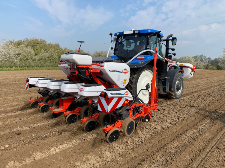 Pour compléter sa gamme de semoirs monograines, Kuhn propose désormais un nouvel élément semeur baptisé Kosma. Le constructeur le présente comme un appareil qui allie la légèreté du modèle Planter 3 à la précision du Maxima 3. En effet, le Kosma reprend les mêmes caractéristiques de mise en terre et de distribution que ce dernier. En revanche, le poids par élément est de 95 kg seulement, contre 120 kg pour le Maxima 3. Il est conçu pour travailler principalement sur sols finement préparés, à des vitesses comprises entre 4 et 8 km/h. L’entraînement de la distribution peut être mécanique ou électrique. Toutes les technologies de semis de précision sont proposées : modulation de doses rang par rang, coupure individuelle par GPS ou manuellement, réglage de la densité depuis la cabine et compensation dans les courbes. Les châssis TD et TS sont recommandés pour les polyculteurs éleveurs, les Cuma et les ETA. Proposés en version six rangs, ces châssis sont aussi disponibles avec une trémie de fertilisation de 950 litres et des disques enfouisseurs.