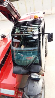 Question confort, la cabine a été entièrement revue. On remarque d’abord une large marche et deux grandes poignées qui facilitent son accès. Le constructeur insiste sur l’amélioration de la visibilité avec un pare-brise panoramique monobloc à l’arrondi très haut, qui dégage la vue sur les manœuvres du bras télescopique, et une position basse du point d’articulation de la flèche. Les ingénieurs ont aussi travaillé sur l’inclinaison des pales de la grille de toit pour gêner le moins possible la visibilité. À l’intérieur de la cabine, le JSM, joystick spécifique de Manitou, équipe tous les modèles. Il est fixé sur l’accoudoir « flottant » du siège pneumatique Grammer. L’acheteur pourra choisir la position des boutons sur l’accoudoir ou le tableau de bord pour activer les fonctions les plus utilisées.