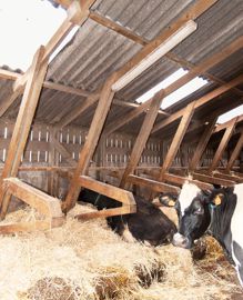Aire paillée L'ancienne aire paillée continue d'être utilisée en attendant que la dernière partie du nouveau bâtiment soit construite. Une fois finalisée, des box y seront aménagés pour accueillir les vêlages et l'infirmerie.