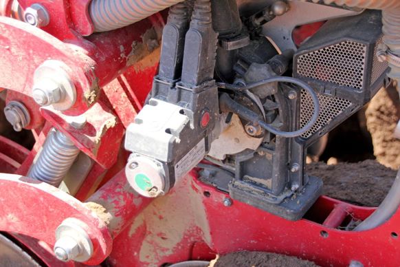 « Parmi les atouts, je pense aussi au confort et au gain de temps, ajoute Aurélien Gaugain, chauffeur attitré de ce semoir à l’ETA Cadeau. En bout de parcelles, la distribution s’activera au bon moment sans que j’aie à m’en occuper. Chez certains clients, je programme aussi des coupures pour les passages de l’enrouleur d’irrigation, ce qui fait économiser encore plus de semences. La console en cabine m’indique quels sont les rangs actifs et inactifs. Chaque descente est équipée d’un capteur infrarouge qui compte les grains et mesure la densité réelle. Ce système m’alarme en cas de problème si, par exemple, la distribution ne s’est pas enclenchée. »