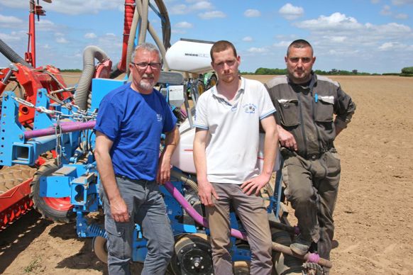 Même sentiment positif à la Cuma du Don à Guémené-Penfao (Loire-Atlantique). Les adhérents ont acheté en 2018 un Monoshox NG Plus Ribouleau Monosem à entraînement électrique : « Nous l’utilisons pour implanter du maïs et des légumes destinés à l’industrie, précise Frédéric Daniel, du Gaec des Coteaux du Don. Économiser de la semence était l’une de nos motivations. Nous avions installé un kit de débrayage sur notre ancien semoir mécanique, mais cela ne marchait pas toujours correctement. Avec son entraînement électrique, le nouveau semoir fonctionne très bien, à condition d’avoir un signal GPS. » En effet, dans ce secteur très vallonné, le manque de couverture réseau pose parfois des problèmes pour le guidage, surtout dans les parcelles accidentées en bordure de bois. Certains jours, la console ne détecte aucun signal de positionnement. Un phénomène qui se produit uniquement le matin par temps de brouillard. Dans ce cas, il faut soit attendre un peu, soit commencer le chantier en manuel jusqu’au retour du signal GPS. Hormis ce léger souci, les adhérents s’estiment satisfaits de la technologie. Le semoir est monté en combiné sur une herse rotative. L’installation comprend aussi une cuve à l’avant pour l’engrais. Le matériel intervient sur cinq exploitations. Il y a dans chacune au moins un ou deux agriculteurs capables de le conduire.