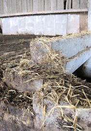 L'objectif est de résoudre le problème de fumier mou que rapportent les trois couloirs de raclage en dépit des 4 kg de paille/vache/jour apportés sur les logettes. Jusqu'en juillet, les associés y remédiaient en le mélangeant tous les deux jours à trois semaines au fumier pailleux des génisses et des taurillons. « La capacité de la fumière étant insuffisante pour passer tout l'hiver, cela nous permettait de stocker au champ le fumier devenu compact, en attendant les périodes d'autorisation d'épandage. »
