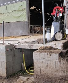 LES DÉTAILS AUXQUELS IL FAUT PENSER PENDANT LES TRAVAUX. Un abri pour le nettoyeur à haute pression  Entre le canal d'égouttage et le prolongement bétonné de la sortie de stabulation est réservé un espace de rangement du nettoyeur à haute pression. L'arrivée d'eau qui était à quelques mètres de là, a été rapprochée. © C.H.