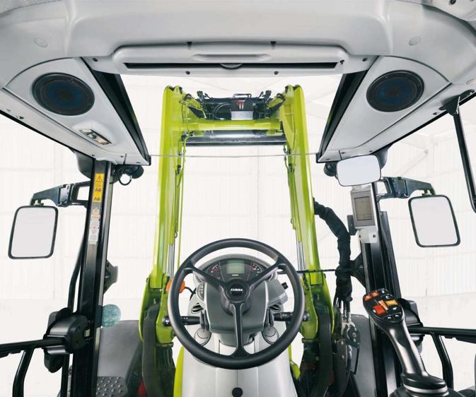 « Médaillée d'or par le Sima, cette cabine panoramique était un peu la visite incontournable pour un éleveur. Elle équipe les tracteurs Claas Arion (85 à 135 ch) et offre une visibilité assez étonnante avec un pare-brise qui va du plancher jusqu'au toit de la cabine. C'est particulièrement intéressant pour le travail au chargeur frontal. La performance est que ce pare-brise, qui s'étend donc jusqu'au toit, est sans renforts, tout en répondant aux normes de sécurité. On peut cependant se poser la question du nettoyage de cette surface vitrée et de la visibilité qu'il reste une fois souillée par diverses projections. »