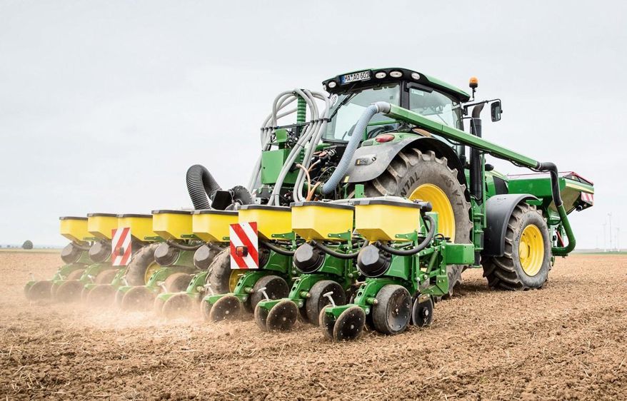 « Semer du maïs à 20 km/h avec la précision d'un semoir monograine, c'est possible aux USA et bientôt chez nous. Le semoir Exactemerge de John Deere était l'autre médaille d'or de l'innovation. Chaque élément semeur est équipé d'une microtrémie et de deux moteurs électriques. L'un entraîne le disque de distribution, le second une courroie à brosse (photo en médaillon) où se logent les grains et qui assure un convoyage vertical jusqu'au sol. Exit les classiques tubes de descente du grain par gravité. Les vitesses du disque et de la courroie à brosse sont proportionnelles à l'avancement du tracteur. La graine est déposée dans le sillon avec une vitesse horizontale nulle. La puissance nécessaire et le prix ne nous ont pas été dévoilés. »