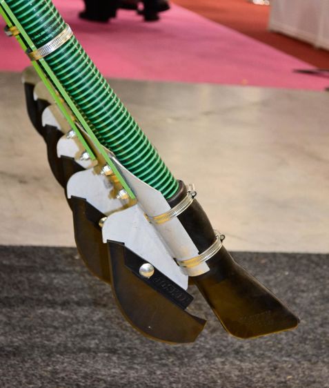 « Pendislide est le dernier-né de la gamme des rampes pendillards de Joskin. Elle est équipée de patins en Ertalon (un polyamide très résistant). Leur but n'est pas d'incorporer l'effluent, mais d'ouvrir la végétation pour une application plus précise à la base des feuilles sans les souiller. J'y vois plusieurs avantages : une meilleure repousse de l'herbe après la fertilisation organique, une meilleure appétence pour le pâturage qui suit et, surtout, moins de pertes par volatilité, un élément crucial pour nous qui épandons le digestat issu de notre méthaniseur. Cette rampe est disponible en trois largeurs (9 m, 12 m et 15 m) avec des répartiteurs verticaux équipés de vannes manuelles de dosage. L'écartement est de 30 cm. »