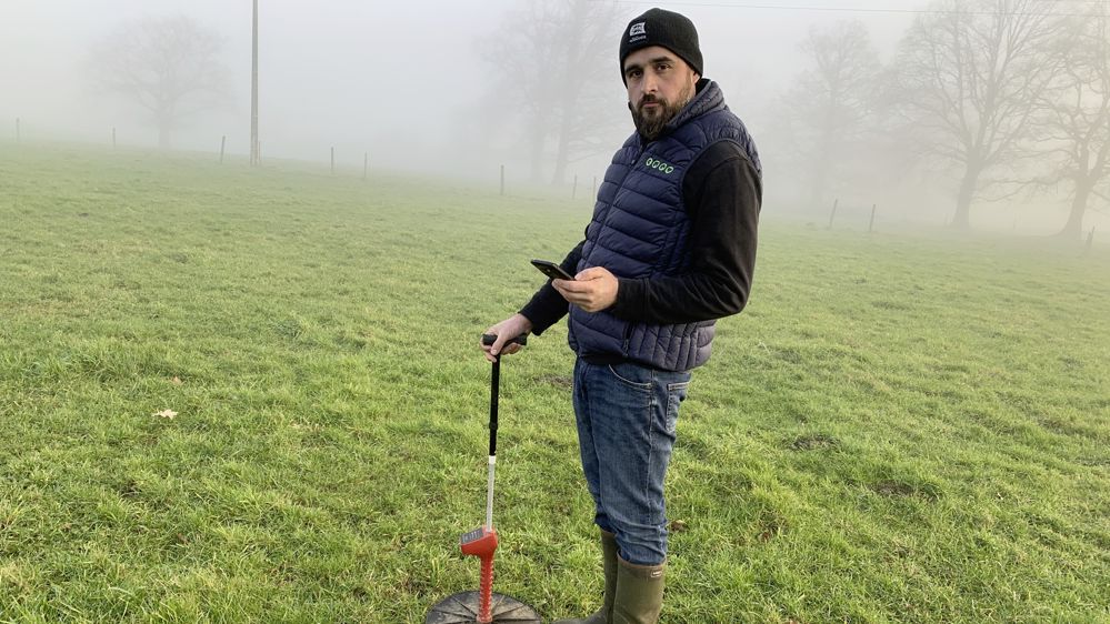 L’herbomètre est le bras armé de Cyrille. Il est relié en bluetooth à une application sur son smartphone qui transforme la hauteur d’herbe en quantité de matière sèche disponible. Il s’appuie sur un repère simple : laisser de 1 500 kg à 1 600 kg de MS/ha de stock sur pied à la sortie des vaches du paddock, « ce qui correspond à 6 cm de hauteur d’herbe. La mise à l’herbe est prévue fin février à 1 800-1 900 kg de MS/ha. Les laitières en consomment 500 kg sur 1 ha, soit l’équivalent d’un quart à un tiers de ration fourragère sur 50 à 80 ares, calcule-t-il. J’ajuste toutes les semaines la ration à l’auge en fonction de l’herbe disponible. » S’il observe un peu trop de matières mortes, il emmène le troupeau directement au paddock après la traite du matin pour un pâturage actif. La ration est alors distribuée en deuxième partie de journée. En pleine pousse d’herbe, l’objectif est de fermer le silo, là aussi en laissant 1 500 à 1 600 kg de MS/ha résiduels à la fin du pâturage du paddock. Une fois par semaine, pour actualiser ses repères, l’éleveur mesure les hauteurs d’herbe à pâturer les jours suivants, ceux qui viennent d’être pâturés et ceux consommés deux semaines avant.