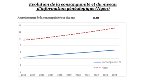 L’accroissement de la consanguinité sur une période donnée est plus important que la valeur de la consanguinité à un instant donné. « Régulièrement faire un état de la consanguinité de la race d’une génération à l’autre permet de voir si l’on observe un accroissement plus ou moins fort. » Plus l’accroissement est fort, plus le risque de faire apparaître des effets délétères liés à la consanguinité est élevé.
