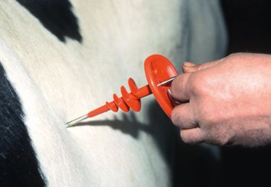 - dans le cas où la vache est en train de s'asphyxier, il est possible de recourir à un trocart afin de perforer le flanc gauche, où il est le plus gonflé, en direction de la patte avant droite.