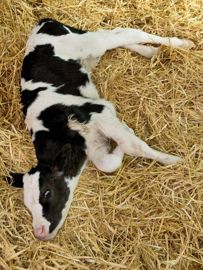 L'un des plus beaux veaux du lot est couché sur le côté. Son examen clinique montre un animal sans fièvre, sans diarrhée, avec une auscultation cardio-respiratoire normale, un nombril et des articulations sans anomalie. Il n'y a pas de raideur du cou, mais l'animal semble perdu dans son environnement. Il ne cligne pas des paupières lorsqu'on approche rapidement notre main de son oeil, alors que sa pupille se contracte lorsqu'on l'éclaire avec une lampe. Nous sommes donc face à un veau aveugle sans atteinte de l'oeil, ce qui signe probablement une atteinte cérébrale.