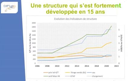Résultat : la structure est passée de 2 à 5 UTAF, de 250 000 l à 1,2 Ml de lait et de 150 à 400 ha.