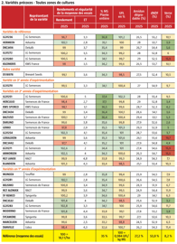 Les variétés S2 (indices 280 à 310) correspondent au réseau d’essai couvrant les zones du Nord-Est et du Centre-Est (des Ardennes à la Bourgogne-Franche-Comté) et du Centre-Ouest (Sud-Bretagne, Pays de la Loire), soit des besoins en sommes de températures de 1485 à 1555°C.