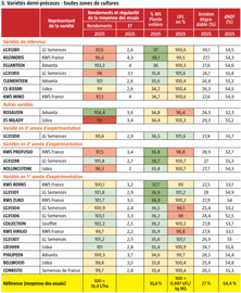 En précocité de milieu de groupe, Eglanteen obtient des rendements élevés et réguliers depuis trois ans. LG31303 affiche la valeur UFL la plus élevée de la série, mais des rendements inférieurs à la moyenne et une sensibilité à la verse en fin de cycle. Clementeen a des rendements élevés et réguliers sur trois ans dans la zone du Nord-Est. LG31300 est une variété précoce à la floraison, avec une bonne vigueur au départ, mais aussi une sensibilité à la verse. Sa valeur UFL est élevée, avec de bons rendements en 2023 et 2024, mais juste dans la moyenne en 2025.