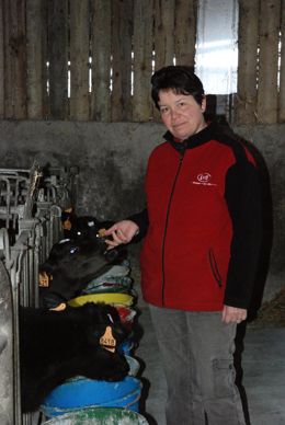Isabelle Belloin a appris à utiliser le vinaigre de cidre il y a un an, à l’occasion d’une formation sur le thème des diarrhées des veaux proposée par Élevage conseil Loire Anjou. « Une diarrhée peut encore arriver, mais c’est beaucoup plus rare qu’avant. Nos veaux sont en meilleure santé, ils ont une bonne croissance. Nous passons moins de temps à nous en occuper et nos frais vétérinaires ont diminué. Je ne reviendrais pas en arrière ! » Isabelle est en Gaec avec son mari et son fils, à Brain-sur-Longuenée (Maine-et-Loire). Ils élèvent 65 vaches prim’holsteins pour une production de 650 000 litres de lait au robot. L’alimentation du troupeau s’appuie sur l’ensilage de maïs et d’herbe, l’enrubannage de luzerne, un mélange de céréales aplaties et le pâturage au printemps. À la naissance, les veaux reçoivent du colostrum à la première buvée, puis dès le deuxième repas, deux litres de lait chaud deux fois par jour jusqu’à deux mois environ. Depuis un an, Isabelle ajoute une cuillère à soupe de vinaigre de cidre dans le seau afin de faire cailler le lait. Une fois la phase d’alimentation lactée terminée, l’éleveuse réalise chaque mois une cure de quatre à cinq jours en mélangeant le vinaigre de cidre à l’aliment. « Ils adorent ça ! » constate-t-elle.