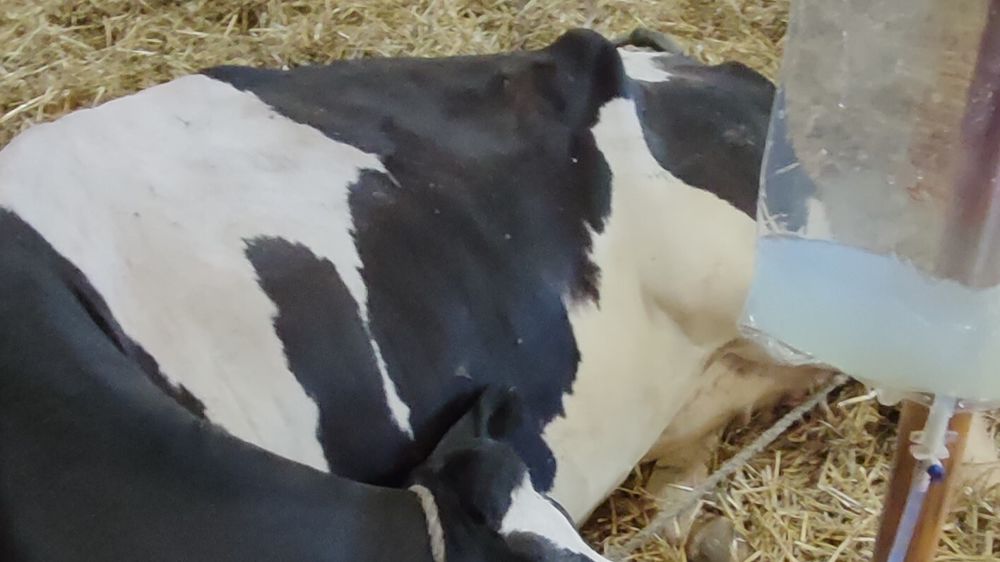 Pour rappel, à eux deux, ces vaccins ont pour but de réduire l’incidence des mammites à streptocoques, staphylocoque et colibacille et de diminuer la sévérité de certaines d’entre elles. Mais leur efficacité n’est pas de 100 %, comme nous le verrons dans ce cas. Sur place, j’examine la vache couchée dans la paille, incapable de se lever. Elle est en position d’auto-auscultation, très abattue, respire vite, présente une hyperthermie modérée et a le quartier postérieur droit induré avec un lait d’aspect très modifié.